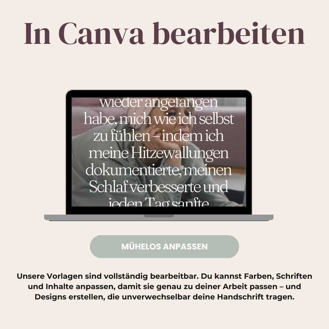 Jedes Video ist vollständig in Canva bearbeitbar, sodass du in wenigen Minuten deinen eigenen Text, Untertitel, dein Branding oder deine Botschaft hinzufügen kannst — ganz ohne Filmen, technische Bearbeitung oder fortgeschrittene Designkenntnisse.