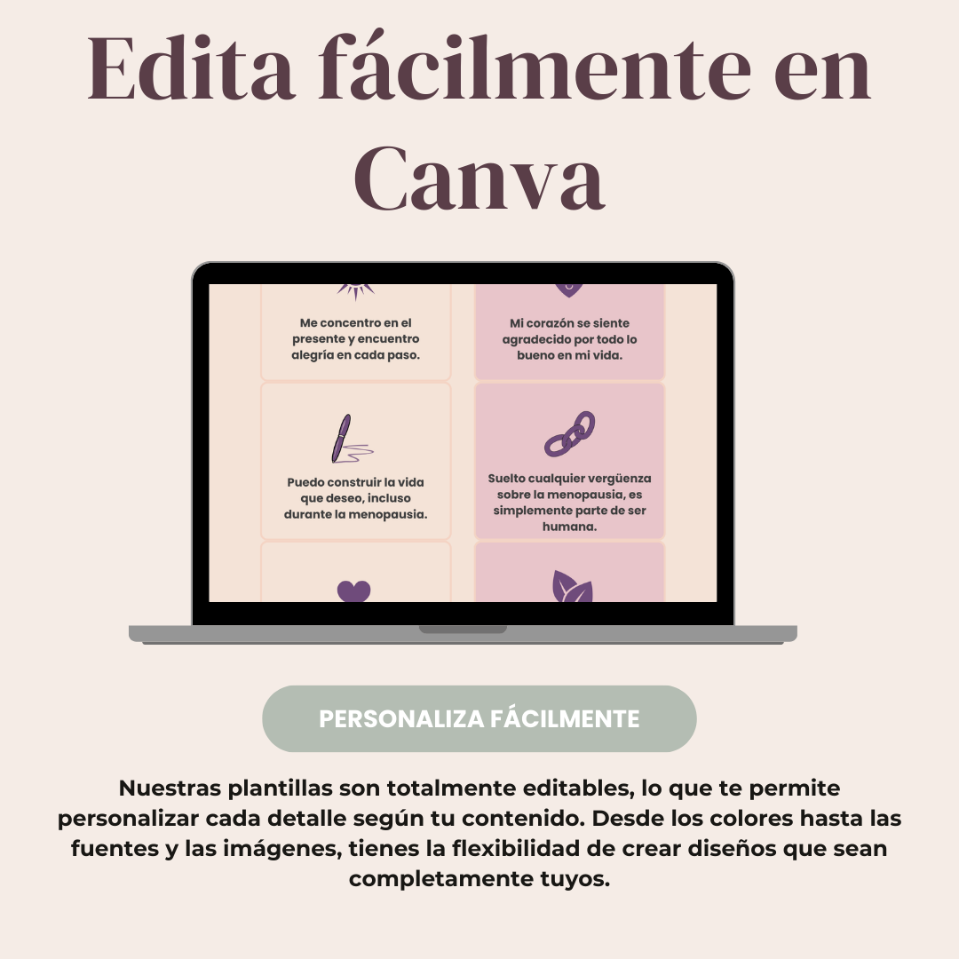 La menopausia es mucho más que una transición física — es un cambio emocional, mental y espiritual en la vida de una mujer. Durante esta etapa, la mente puede llenarse de dudas, miedos, resistencia o duelo por aquello que está cambiando. Estas tarjetas fueron creadas para reprogramar suavemente ese diálogo interno y sustituirlo por compasión, fortaleza, calma y confianza en ti misma.